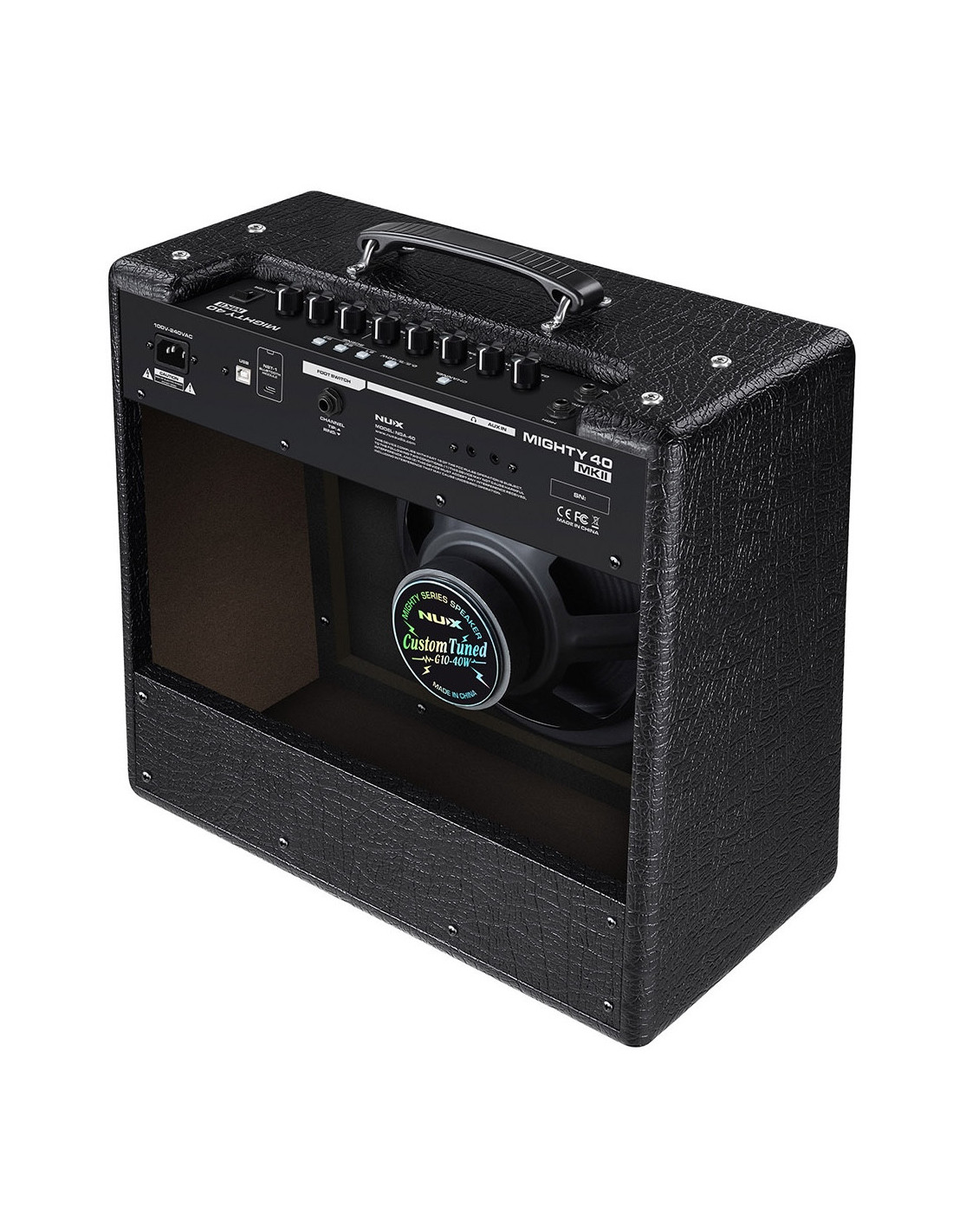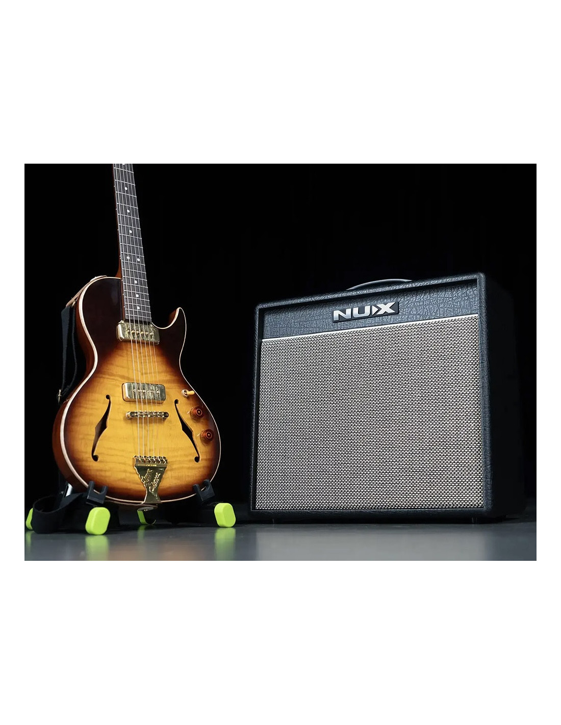 Amplificador NUX MIGHTY 40 MKII para guitarra eléctrica de 40W. Es el amplificador de guitarra definitivo para música moderna: combinación perfecta de potencia, versatilidad y tecnología de modelado avanzado. Ya sea que practiques en casa, toques en jam sessions o te presentes en vivo, este amplificador te ofrece tonos realistas de 21 amplificadores legendarios, 43 efectos personalizables, conectividad inalámbrica Bluetooth y control total desde tu smartphone o PC.