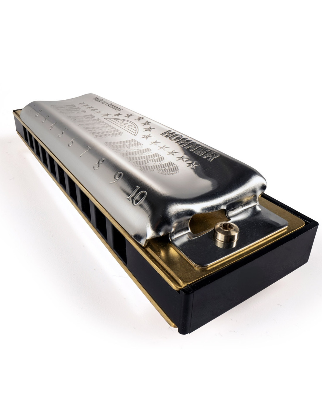 Armónica Diatónica Hohner Big River con afinación en C (Do) de 10 huecos con 20 voces. Es una instrumento versátil, atractivo y de sonido robusto de bajo precio. Presenta un sonido brillante y limpio debido a su cuerpo en plástico. Es una armónica de nivel inicial de muy buenas especificaciones, ideal para blues y géneros clásicos hasta Rock. Incluye lecciones On Line para aprender a tocar el instrumento musical. Manufactura en Alemania