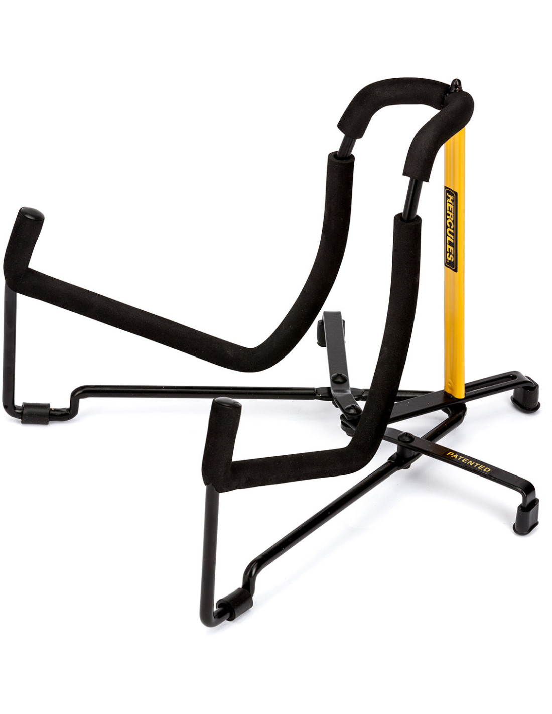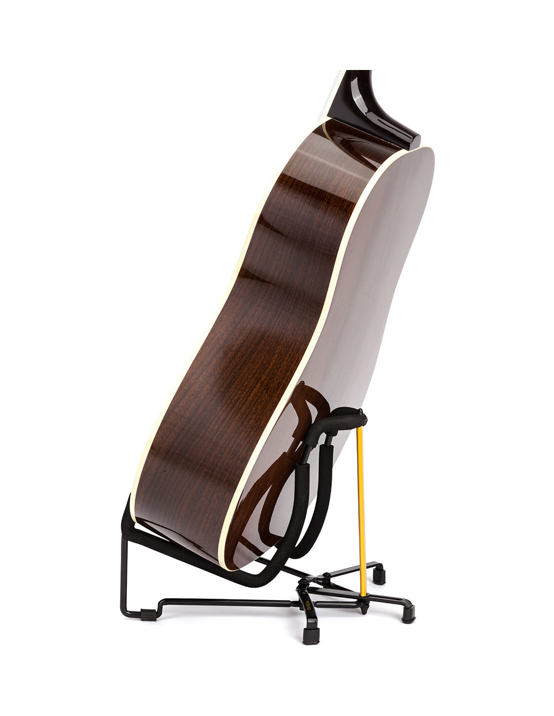 Soporte HERCULES GS301B para guitarra acústicas tanto clásicas como Folk. Es la solución perfecta para músicos en movimiento. Con una construcción de acero resistente pero liviana, se adapta a guitarras acústicas y a la mayoría de las vihuelas. Su diseño compacto y delgado se pliega fácilmente para facilitar el transporte. Además, la espuma de goma especialmente formulada protege completamente el instrumento en todos los puntos de contacto, asegurando que esté en buenas manos. Con una construcción robusta de acero, este soporte se adapta de forma segura.