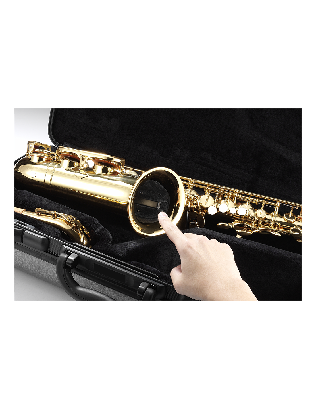 - Diseño compacto en campana: El soporte se guarda de forma segura dentro de la campana del saxofón, sin ocupar espacio en el estuche.