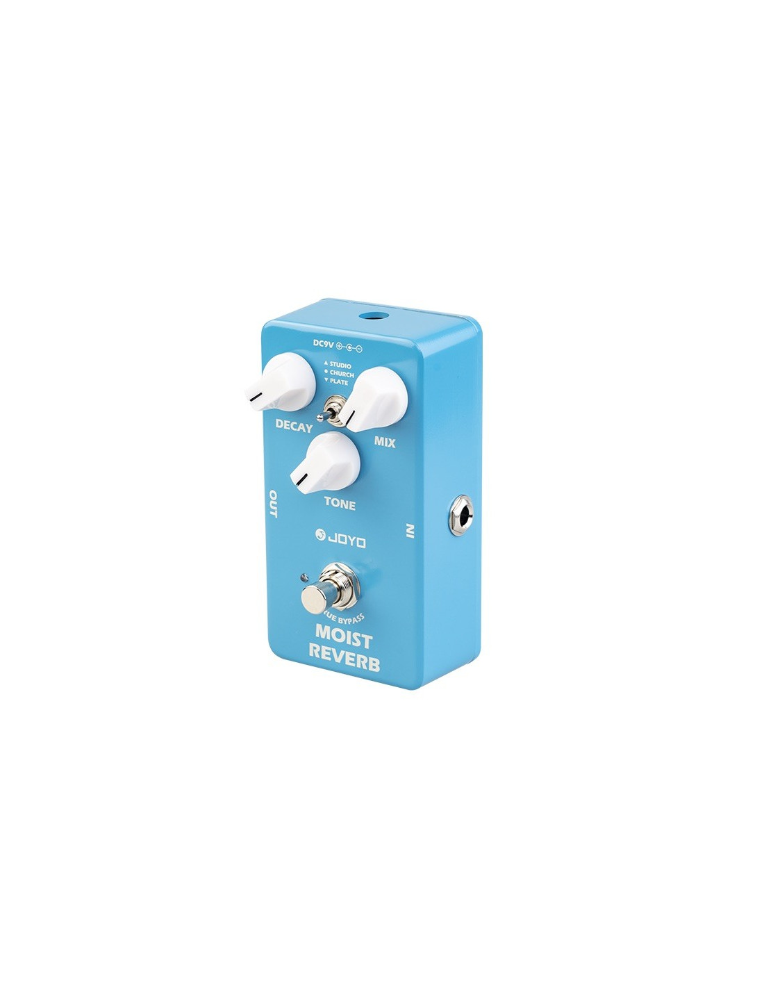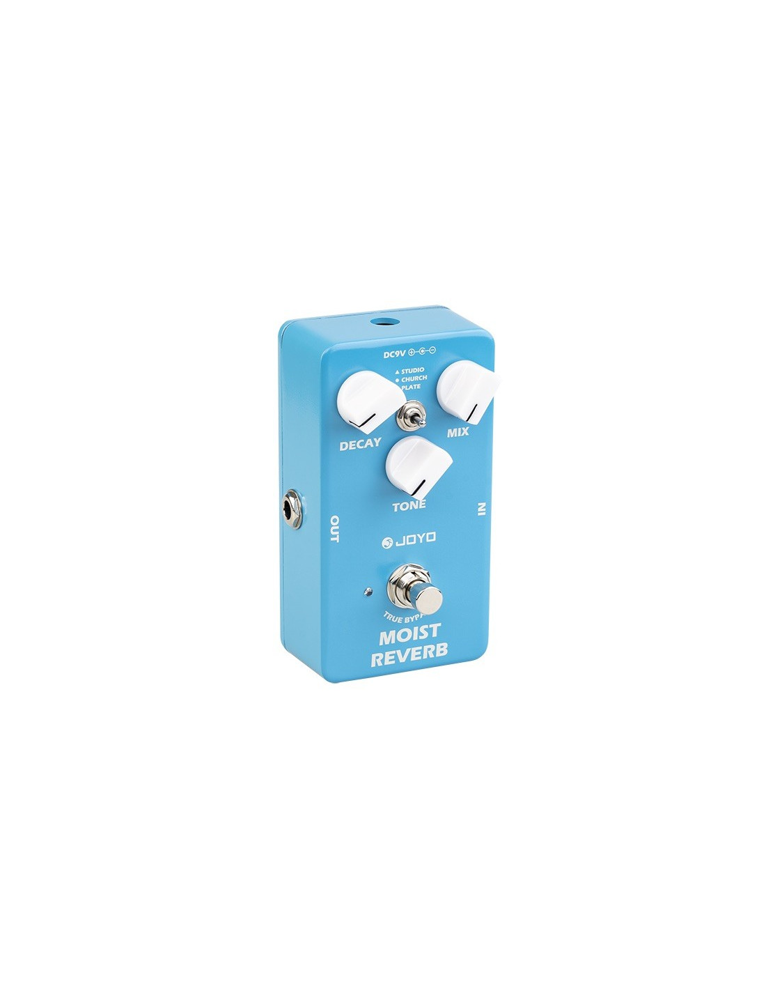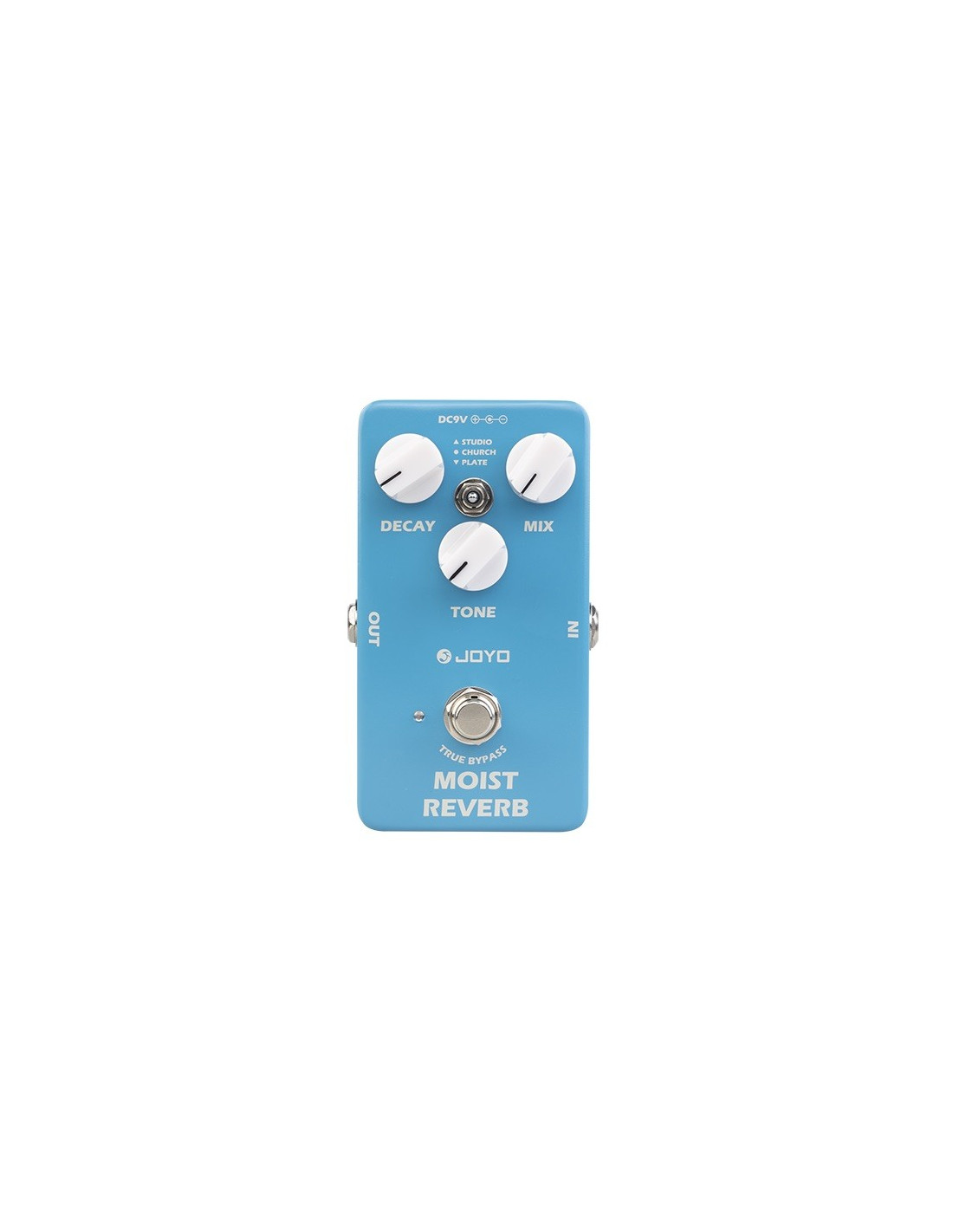 Pedal JOYO JF-20 MOIST REVERB es un pedal de efectos de reverberación digital para guitarra electrica, cuenta con un chip DSP de 32 bits de alto rendimiento. Posee 3 modos de reverberación: Studio, Church & Plate para obtener una gran versatilidad y rango de operación según tu gusto. Las perillas MIX, TONE y DECAY ofrecen una amplitud tonal, logrando diferentes texturas.