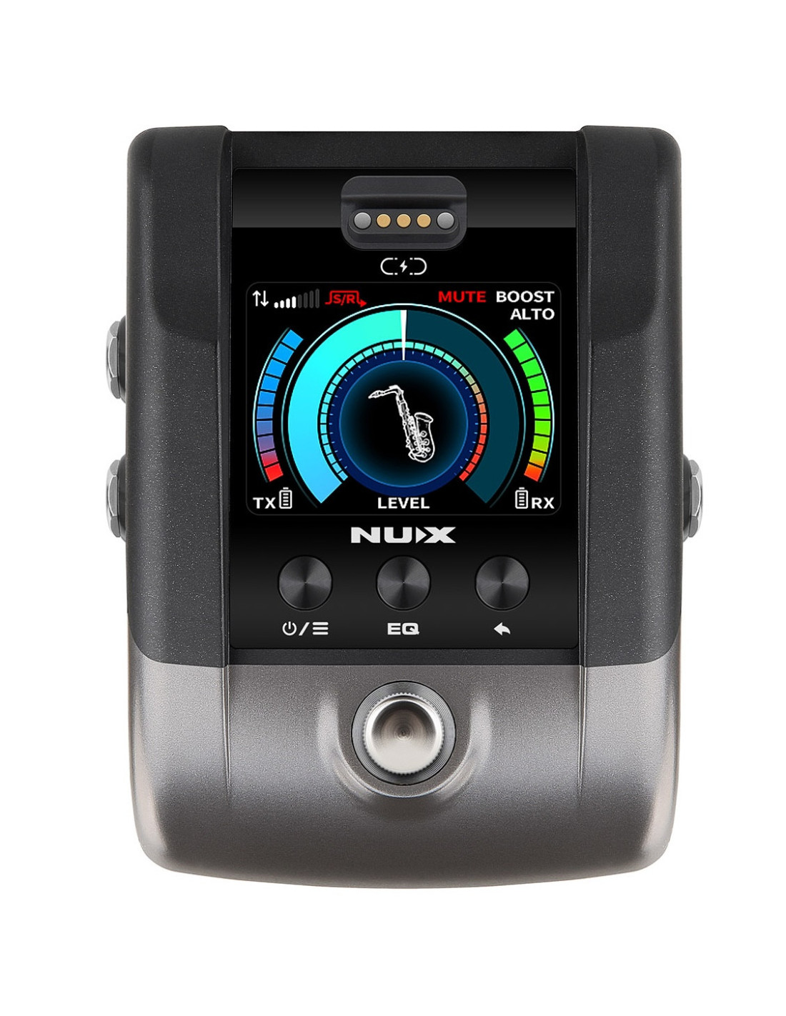 Sistema inalámbrico NUX B-6 PRO para Saxofón. Libérate del cable y toca sin ataduras con el “FreedomWind Wireless”, diseñado para instrumentos de viento y metal (saxofón, trompeta, trombón, etc.). Este sistema inalámbrico profesional ofrece audio de alta resolución de 24 bits / 48 kHz, latencia ultra baja (desde 3.6 ms) y un alcance de hasta ~50 m (165 pies) para que tu interpretación fluya sin límites. Con micrófono de condensador de montaje especializado, diseño robusto, receptor estilo pedal, y carga magnética integrada, es la solución definitiva para escenarios móviles, jazz, bandas en vivo, sesiones al aire libre y grabación portátil.