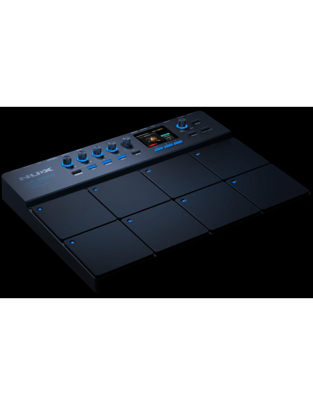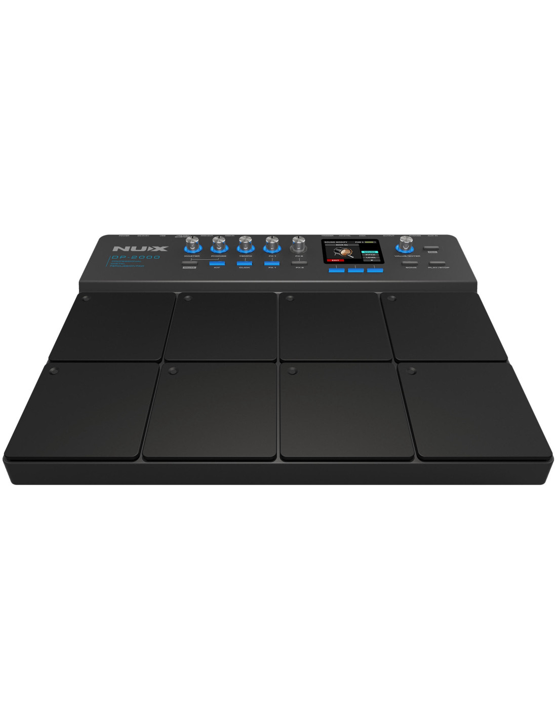Kit de Multi pad NUX DP-2000 con soporte y silla. Un poderoso kit de percusión integrado. Con 8 pads sensibles a la velocidad, no solo incluye los samples de batería acústica de alta calidad de nuestro reconocido kit DM-8, sino también sonidos de percusión folclórica y electrónicos. Además, puedes expandir tu biblioteca de sonidos importando tus propias muestras de batería con una memoria USB.