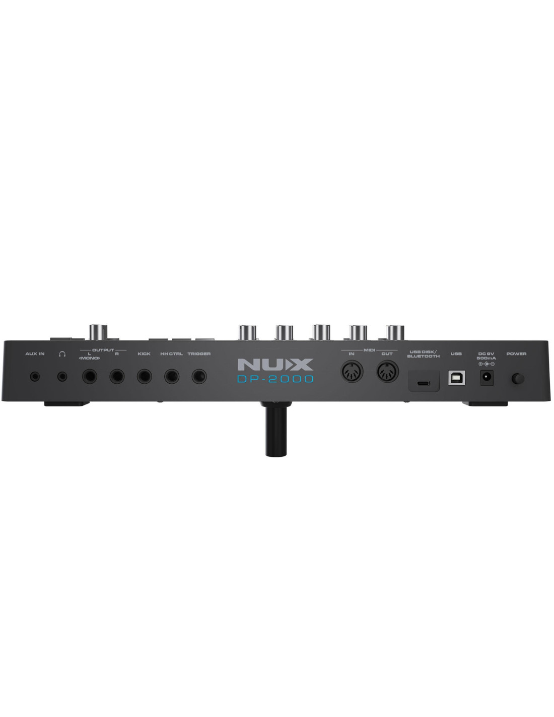 Sonido personalizado y conectividad flexible: El DP-2000 incluye seis efectos integrados que puedes asignar a los pads o como efectos BUS mediante la función FX del panel. Expande fácilmente tu biblioteca de sonidos importando tus samples favoritos a través del puerto USB y una memoria USB. El DP-2000 también reproduce música WAV desde memorias USB, lo que lo convierte en un excelente instrumento para presentaciones y práctica. Además, puedes conectarte al módulo Bluetooth NBT-1 de NUX (incluido) a través del puerto USB-C, que admite audio y MIDI Bluetooth.