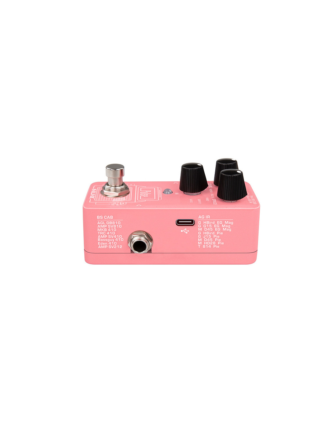 Este innovador pedal, incluye además, ofrece 8 IR de cabina de bajo: AGL DB810 (Aguilar DB 810), AMP SV810 (Ampeg SV810), MKB 410 (Mark Bass 410), TRC 410 (Trace Elliot 410), AMP SV410 (Ampeg SV410 + Tweeter), Bassguy 410 ( Fender Bassman 410), Eden 410 (EDEN 410), AMP SV212 (Ampeg SV212).