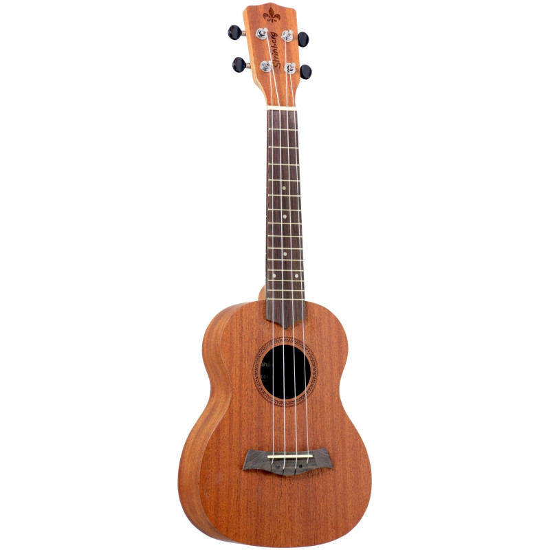 Ukelele Strinberg Uk-06S soprano con cuerpo y tapa en madera de Caoba, Diapasón en palisandro que incluye 12 traste y puente con hermoso diseño que permite cambios rápidos de cuerdas. Acabado natural mate. Esta equipado con cuerdas Aquila profesionales para un sonido vivo y redondo. Clavijas negras. Excelente sonido y desempeño. Incluye forro en lona.