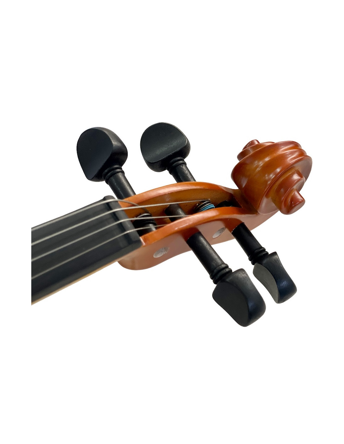 El cordal incluye microafinadores, ideales para lograr una afinación precisa con mínima esfuerzo, especialmente útil en cuerdas nuevas o en ambientes de clase. Para transportarlo con tranquilidad, el instrumento viene con un estuche semirrígido con correas tipo mochila (cargaderas) y compartimento para hasta dos arcos, protegiéndolo de golpes y facilitando la organización. El set se completa con arco (con ajuste de tensión) y colofonia, para que puedas comenzar a tocar desde el primer día. Su acabado natural realza la belleza de la madera.